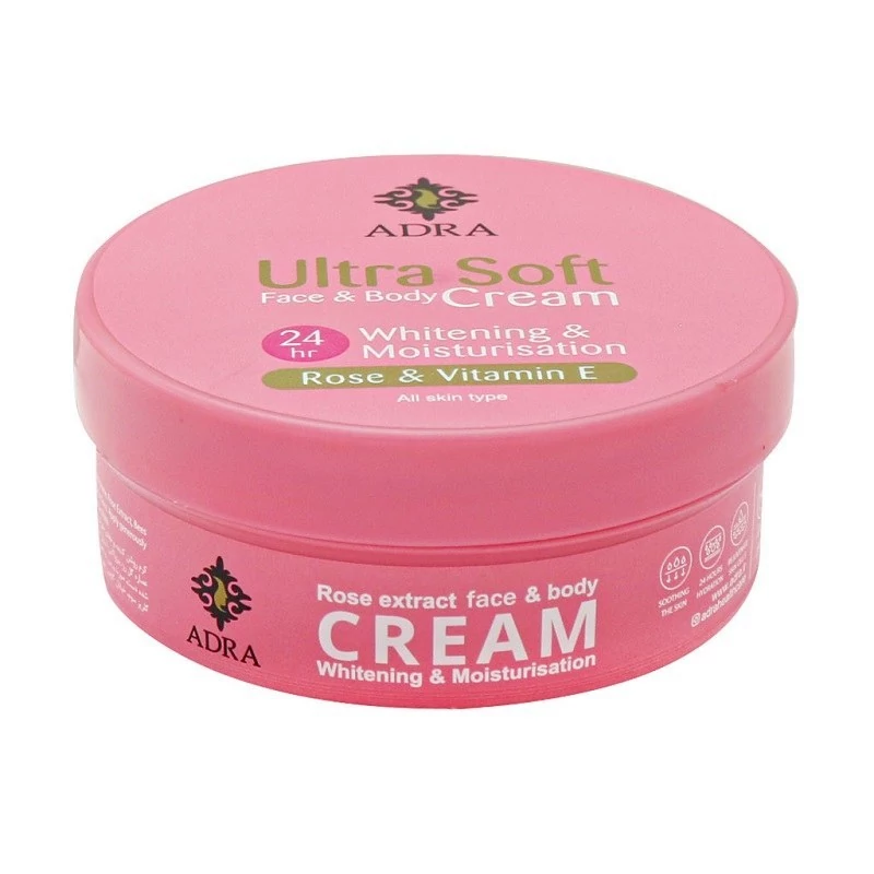 کرم روشن کننده و مغذی صورت و بدن آدرا حاوی عصاره گل رز حجم 200 میلی لیتر