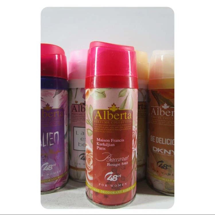 اسپری خوشبو کننده بدن بانوان آلبرتا رایحه باکارات رژ حجم 200 میلی لیتر