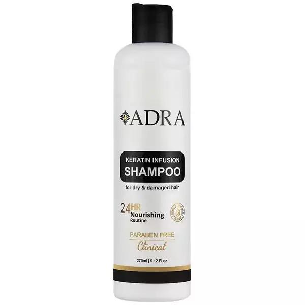 شامپو مناسب موهای خشک و آسیب دیده آدرا حاوی کراتین حجم 270 میلی لیتر