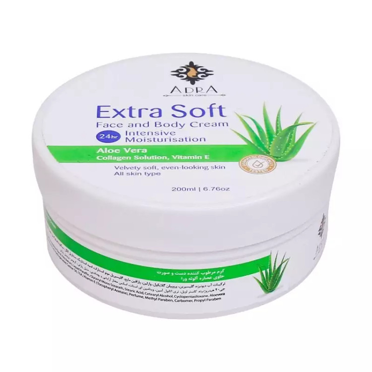 کرم مرطوب کننده دست و صورت آدرا حاوی عصاره آلوئه ورا حجم 200 میلی لیتر