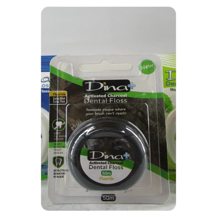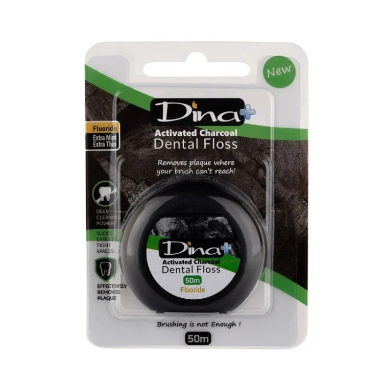 نخ دندان خیلی نازک دینا مدل زغال اکتیو 50 متری